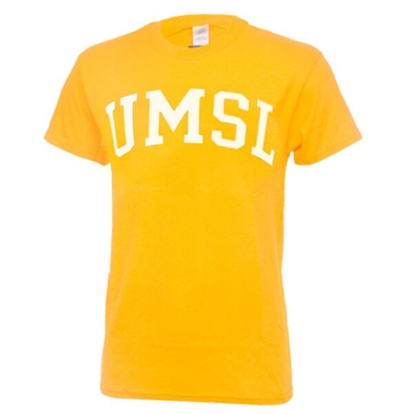 Vibrant gold tee with bold white “UMSL” arch graphic