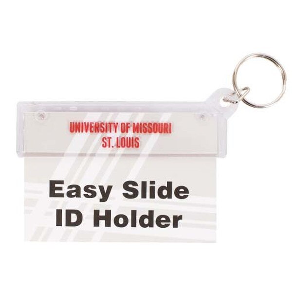 Keep your ID secure and easily accessible with the UMSL Easy Slide ID Holder. Featuring the “University of Missouri St. Louis” imprint in bold red letters, this durable plastic holder includes a sliding mechanism that makes inserting or removing your card effortless. Attached to a sturdy key ring, it's ideal for students, staff, or visitors who need quick access to their campus ID.